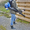 The engine is carried on the back and the blower hose is very light and does not