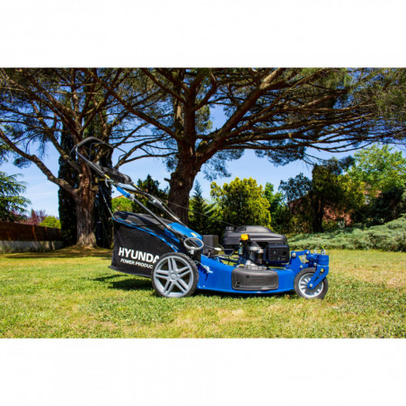 Pour une coupe parfaite de votre gazon sans effort ni fatigue : le tondeuse thermique HTDT512RP Hyundai Idéale pour l'entretien des jardins d'une superficie > 1700m², ce modèle thermique