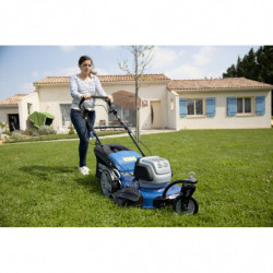 Pojedyncze przednie koło (150 mm) jest obrotowe, niezwykle praktyczne do koszenia w każdym terenie oraz do wbijania się w wysoką lub mokrą trawę, pokonywania przeszkód... lub po prostu zawracania!